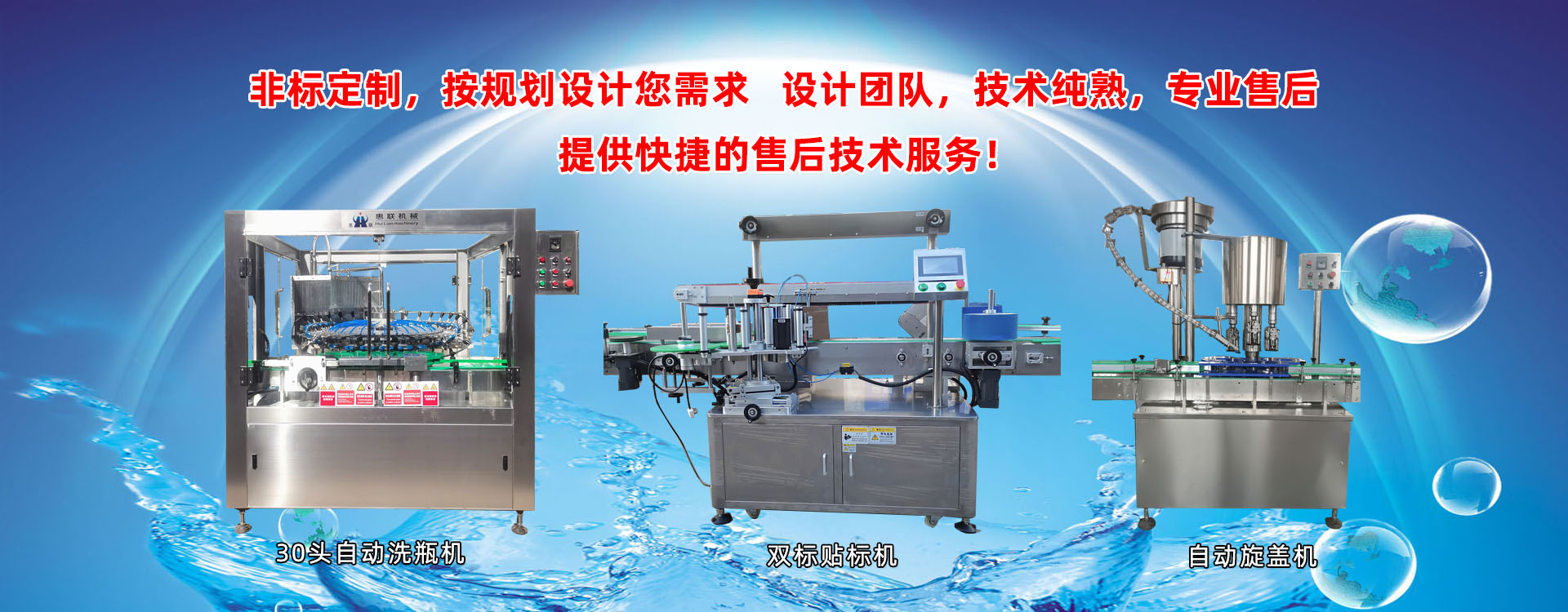 青州市惠聯(lián)灌裝機(jī)械有限公司是一家集生產(chǎn)研發(fā)、銷(xiāo)售、服務(wù)于一體的液體灌裝成套設(shè)備生產(chǎn)企業(yè),可根據(jù)廠(chǎng)家要求設(shè)計(jì)合理液體灌裝生產(chǎn)線(xiàn),為用戶(hù)提供技術(shù)咨詢(xún)、設(shè)計(jì)工藝、場(chǎng)區(qū)平面布置、工藝改造、設(shè)備安裝調(diào)試等完善服務(wù)。 公司生產(chǎn)制造各種類(lèi)型液體灌裝機(jī)、過(guò)濾機(jī),水處理設(shè)備及液體灌裝成套設(shè)備。主要產(chǎn)品有:白酒、葡萄酒、黃酒等酒水灌裝機(jī)、食用油、機(jī)油、潤(rùn)滑油等油類(lèi)灌裝機(jī)、醬油醋、老抽、生抽等調(diào)味品灌裝機(jī)、防凍液、玻璃水灌裝機(jī)、酒精、84消毒液灌裝機(jī)、車(chē)用尿素灌裝機(jī)、口服液灌裝機(jī)、洗滌劑灌裝機(jī)等多種液體、膏體灌裝設(shè)備,全自動(dòng)/半自動(dòng)灌裝機(jī)型號(hào)多,規(guī)格全,洗瓶機(jī)、瓶子封口機(jī)、打塞機(jī)、熱縮機(jī)、瓶子烘干機(jī)、貼標(biāo)機(jī)、噴碼機(jī)、輸送線(xiàn)、裝箱機(jī)、水處理設(shè)備等全套生產(chǎn)線(xiàn)相關(guān)配套設(shè)備齊全,自產(chǎn)自銷(xiāo),一站式購(gòu)齊,售后無(wú)憂(yōu)。